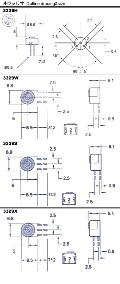 Ø 6.8 × 5圆型/单圈/玻璃釉微调电位器(SQUARE/MULTITURN/CERMET TRIMMER 3329)
